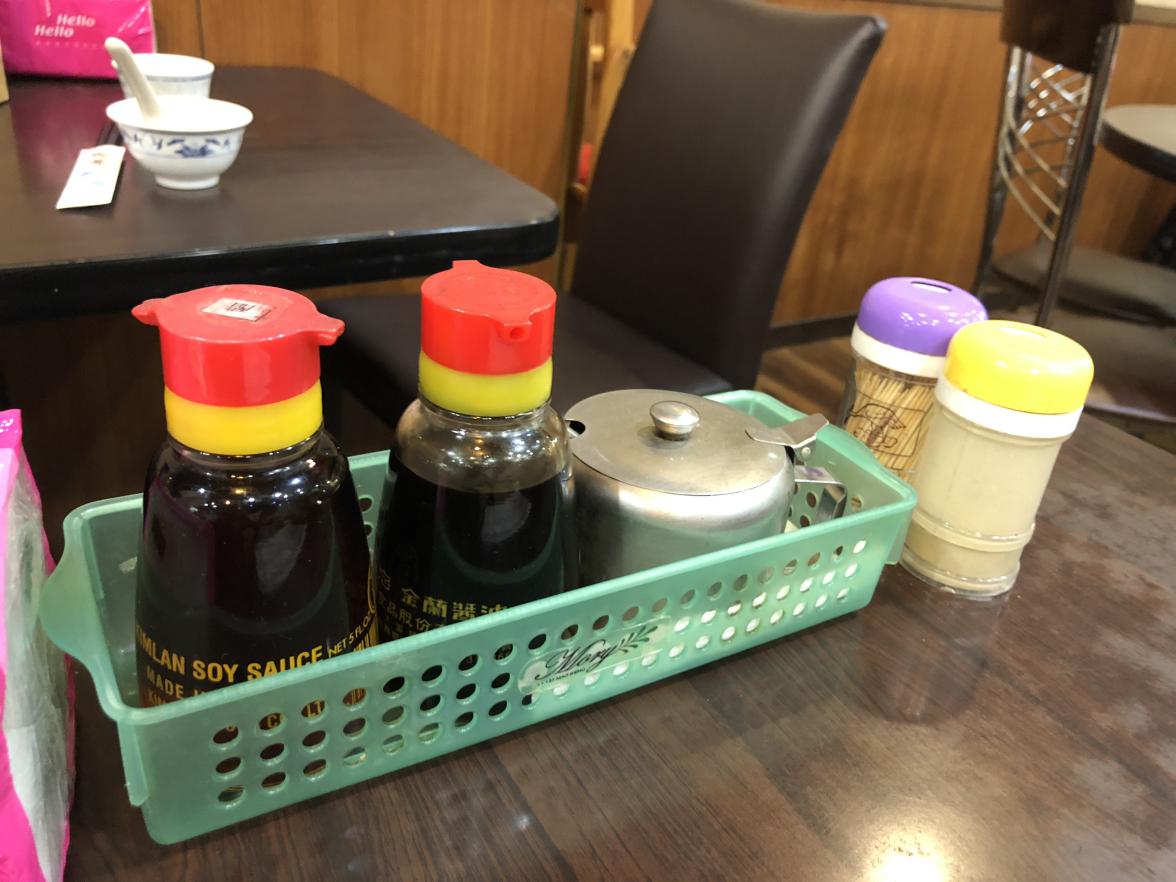 テーブル上の辣醤を少々。