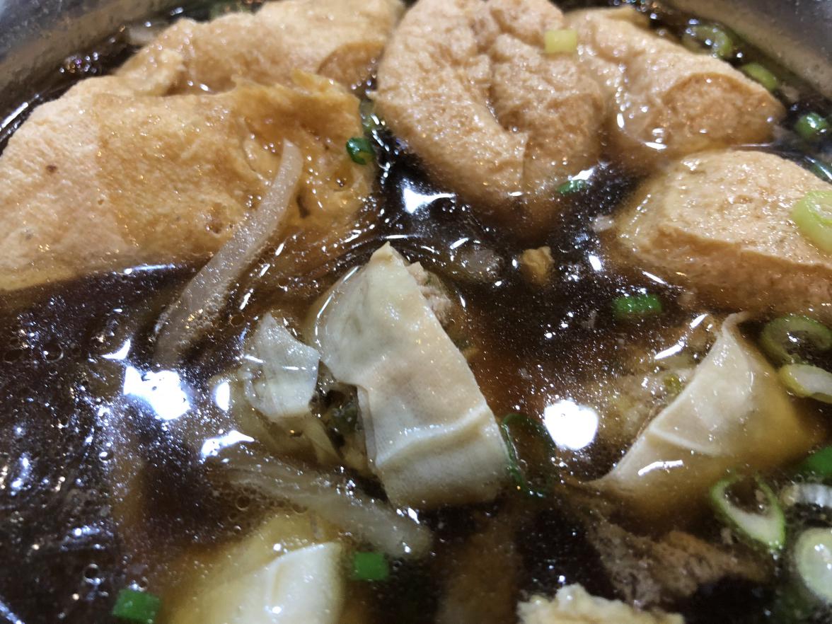 油豆腐細粉!油揚げ、湯葉巻きの春雨スープ。