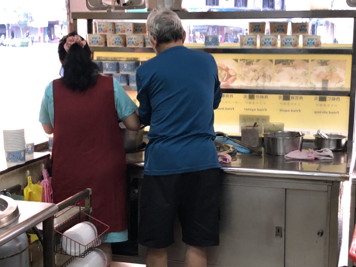 きっとご夫婦なんだろうね。二人で仲良くお粥づくり!