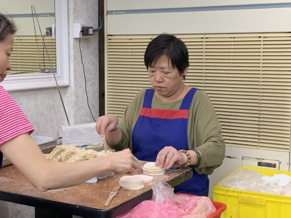 店内では店員さんたちが手際よく餃子を包んでいる!